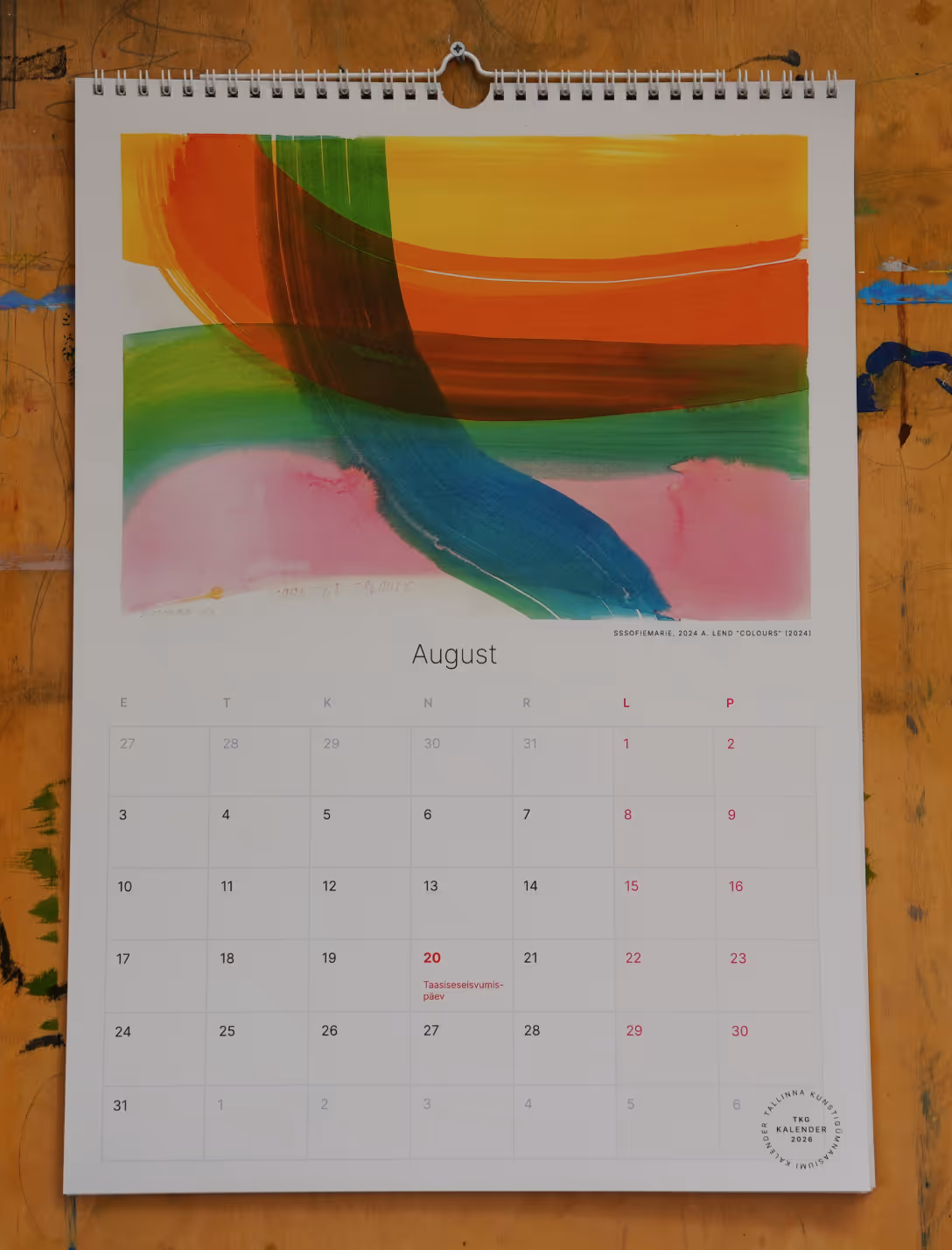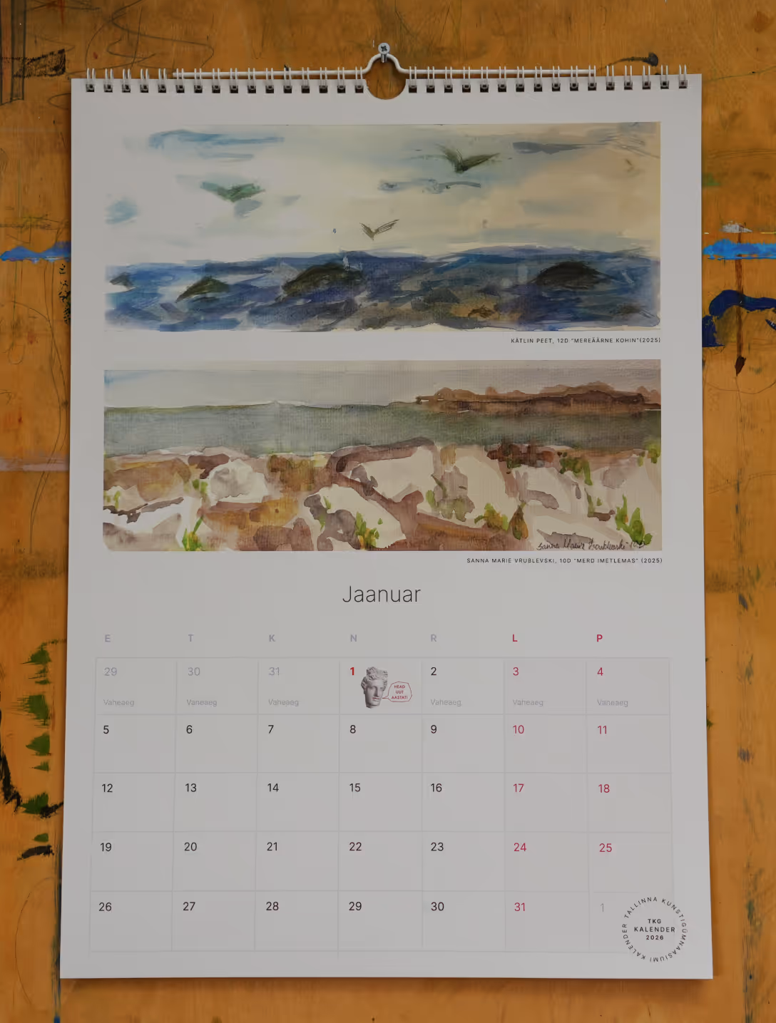 A3 seinakalender TKG õpilaste teostega aastatest 2023-2025. 13 lk, 170g silk paber, värviline.